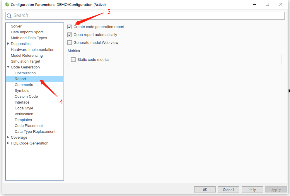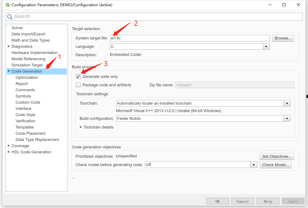 上文提到代码生成利用的是MATLAB自带的MATLAB Coder模块,打开SIMULINK中的Configuraton Parameters模块