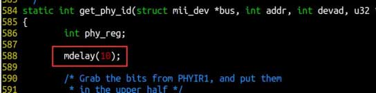 找到 get_phy_id 函数,然后在 get_phy_id 函数里面添加延迟。添加代码如下: