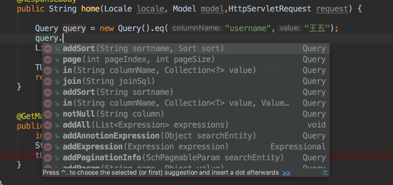 接下来我们自己写一个测试方法,在controller中添加一个新的查询方法