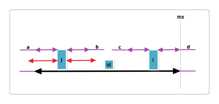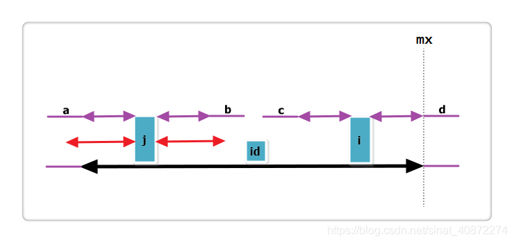 (2):j 回文串全部在 id 的内部,i+Len[j] < mx.如下图: