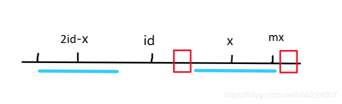 ④当前枚举的中心位置为x,那么其关于id的对称点为2id-x。