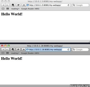 此时我们预期的结果应该是 my-webapp.war 被同时部署至master及slave了,分别试着访问master及slave的http资源,看看是否都部署上my-webapp这个应用了: