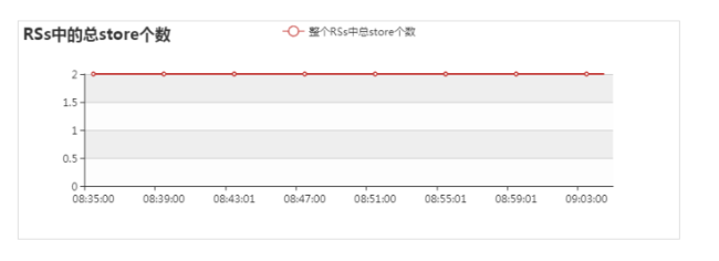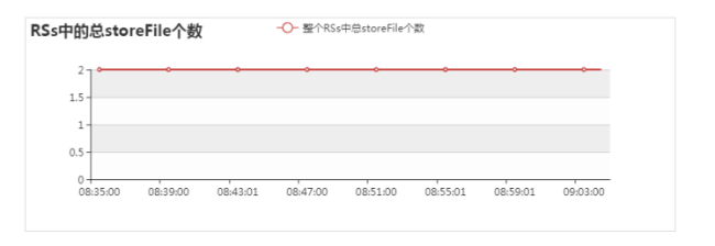 监控 RegionServer 中总store个数 纵轴表示store数量,单位个 横轴表示时间,单位分钟 (5) RegionServer 中总storFile个数