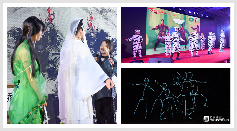 晚会现场精彩纷呈,亮点不断,亚洲诚信的每一位小伙伴精彩的才艺表演,展现了他们各自才华横溢的一面,既有大型反串情景剧、充满朝气的歌舞表演,更有古代与现代相结合的激光舞蹈秀等节目。小伙伴们活力十足,精彩的表演更是赢得满堂喝彩。