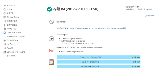 再回到 Jenkins 中,即可看到项目构建的信息。
