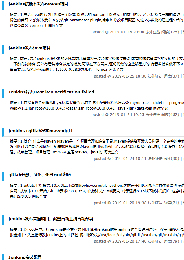 Jenkins 系列 : https://www.cnblogs.com/fawaikuangtu123/category/1386781.html