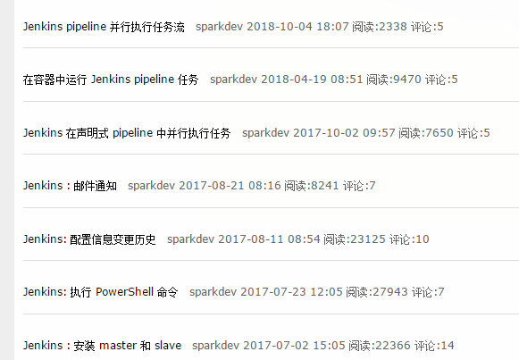 Jenkins (8篇) ; https://www.cnblogs.com/sparkdev/tag/CI%2FCD/