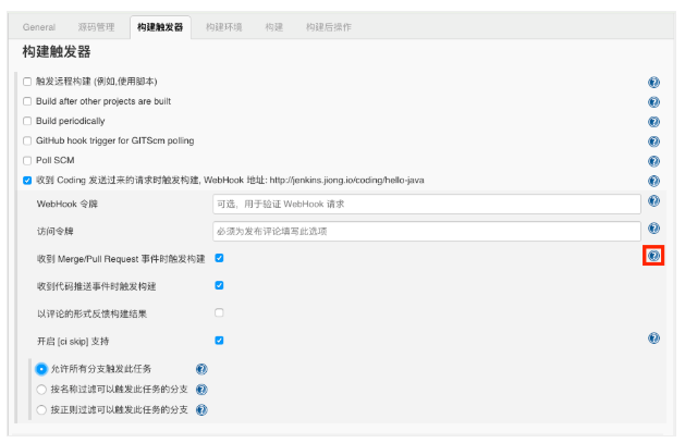 如果需要根据 Merge Request 的构建,先点击右侧的问好。