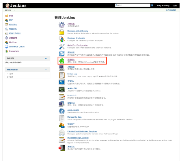 登陆到您的 Jenkins 服务器。选择『系统管理』。