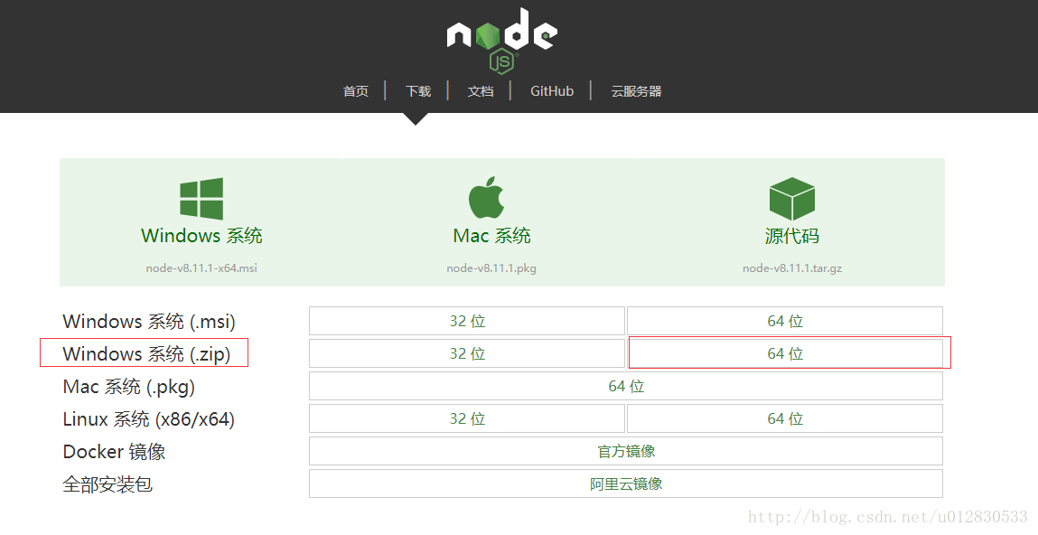 下载node.js 下载并解压好 node.js,本文下载的是v8.11.1 windows64位版本。
