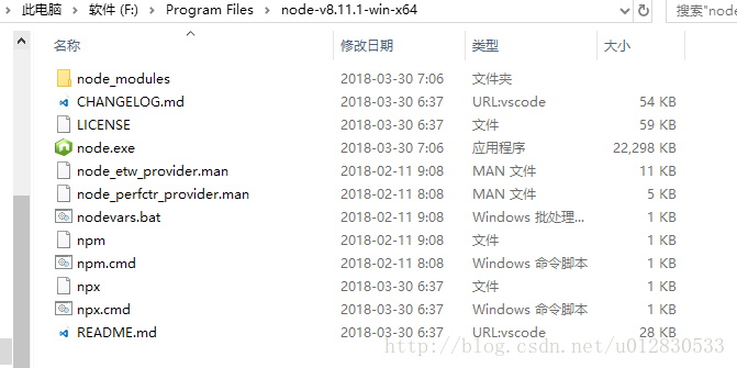 Ps:本文nodejs地址为F:\Program Files\node-v8.11.1-win-x64