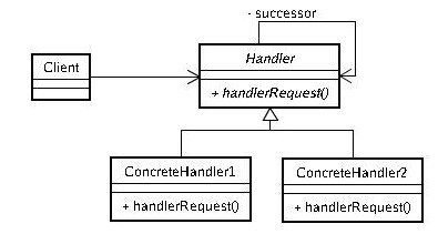 Chain of Responsibility(CoR)责任链设计模式是用一系列请求处理器试图处理一个请求,这些请求处理器之间是一个松散耦合,唯一的共同点是在他们之间传递请求。例如客户端发送一个请求,请求处理器A先处理,如果A没有处理或者无法处理,就将请求传递给请求处理器B,如果B没有处理或者无法处理,就将请求传递到请求处理器C去处理,所有这些请求处理器构成一条请求处理责任链。Chain of Responsibility责任链设计模式的结构如下: