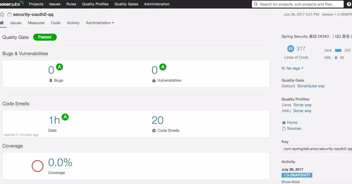 4、成功之后,返回到浏览器,就可以浏览自己的项目的代码质量了