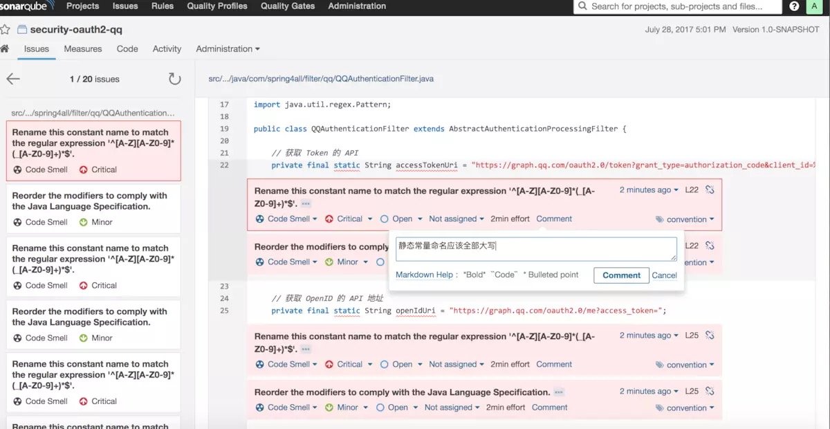 目前码云上代码分析工具首推的也是 sonarqube,支持各种语言的程序检测,使用简单方便,感觉非常适合微服务的代码评审,强烈推荐。