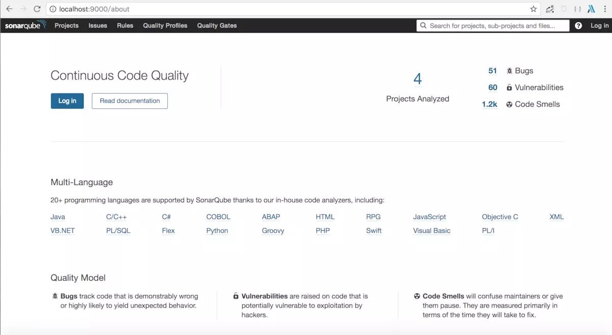 $ docker run --name sq --link db -e SONARQUBE_JDBC_URL=jdbc:postgresql://db:5432/sonar -p 9000:9000 -d sonarqube