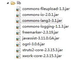 8、增加commons-lang3-3.1.jar文件到啊WEB-INF/lib目录下,struts2最新的web开发包如下: