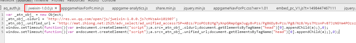 真是偷梁换柱啊,被插入广告代码了。真是无良奸商,什么都做得出。 然并卵,最重要的解决办法是啥?然后把问题扔给了运维的同事。 最终结果是解决不了。没错,就是这么的坑爹。除非采用https。网上那些什么打电话、发信投诉之类的貌似没啥用。可能是运维太烂了。反正结果就是没结果。 然后,没办法啦。只能我们大前端自己想办法屏蔽啦。然后开启了研究劫持代码之旅, ......过程省略了800字寻找过程。 最终发现了,被劫持的广告会定义一个js全局变量_pushshowjs_ ,里面保存了一些劫持广告的相关信息,然后创建一个id为_embed_v3_dc的div放广告。并且每次都是一样的,不会有变化。 根据劫持广告的投放原理,最终使用了js屏蔽被劫持广告的方法。 具体代码如下: