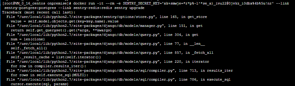 docker run -it --rm -e SENTRY_SECRET_KEY='<secret-key>' --link sentry-postgres:postgres --link sentry-redis:redis sentry upgrade