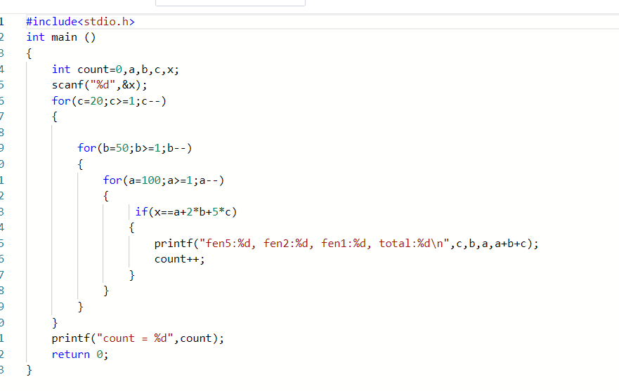 他还对计数的式子做了一个定义用来承载结果,最后格式也有所不同,有些代码已不再一行的地方我并没有再打空格。