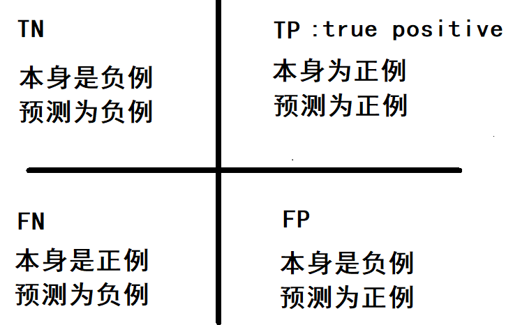 True Negative (真负 , TN) 被模型预测为负的负样本 ;可以称作判断为假的正确率