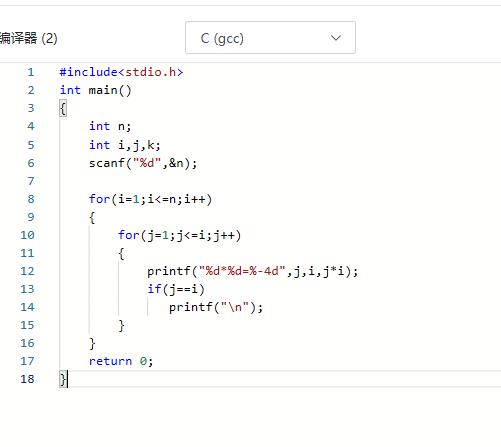 printf("%d%d=%-4d",j,i,ji);用printf输出i,i*j,等号右边左对齐4位