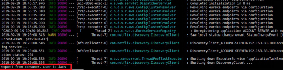 2019-09-19 17:20:35.617 INFO 20890 --- [nfoReplicator-0] com.netflix.discovery.DiscoveryClient : DiscoveryClient_ACCOUNT-SERVER/10.0.0.10:account-server:8090 - registration status: 204