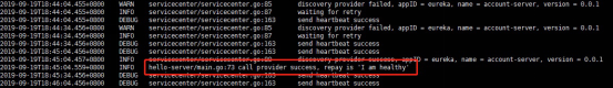 2019-09-19T18:37:50.645+0800 DEBUG servicecenter/servicecenter.go:163 send heartbeat success