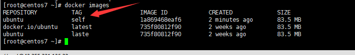 [root@centos7 ~]# docker commit hopeful_carson(NAMES) ubuntu(REPOSITORY):self(tag) //提交镜像,生成新的镜像,镜像里面的配置也保留了,便于多个版本的管理
