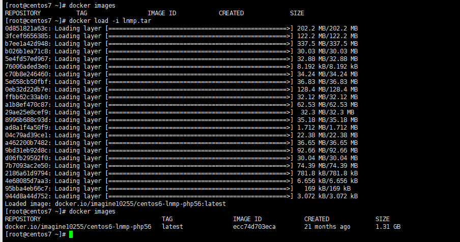 [root@centos7 ~]# docker load -i lnmp.tar //重新导入