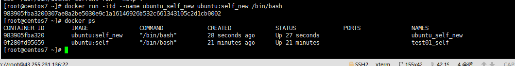 [root@centos7 ~]# docker run -itd --name ubuntu_self_new ubuntu:self_new /bin/bash