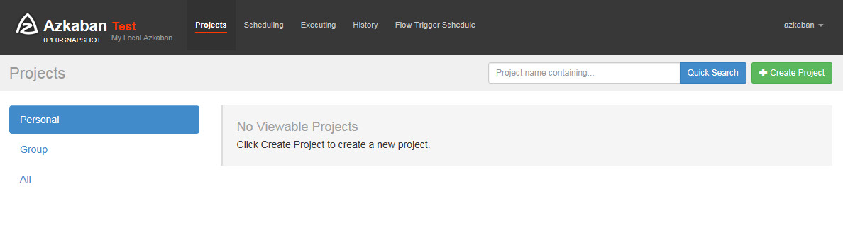 帐号和密码默认是azkaban。登录之后,界面如下,部署成功!