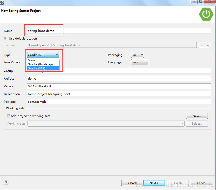 三、填写信息,主要是项目名称和创建类型,这里的Type选STS。然后点Next
