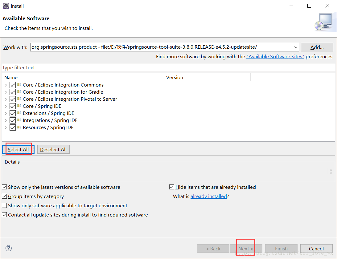 2.4 点击 Select All,之后确认。后面要一直确认。安装完成之后,会提示重启