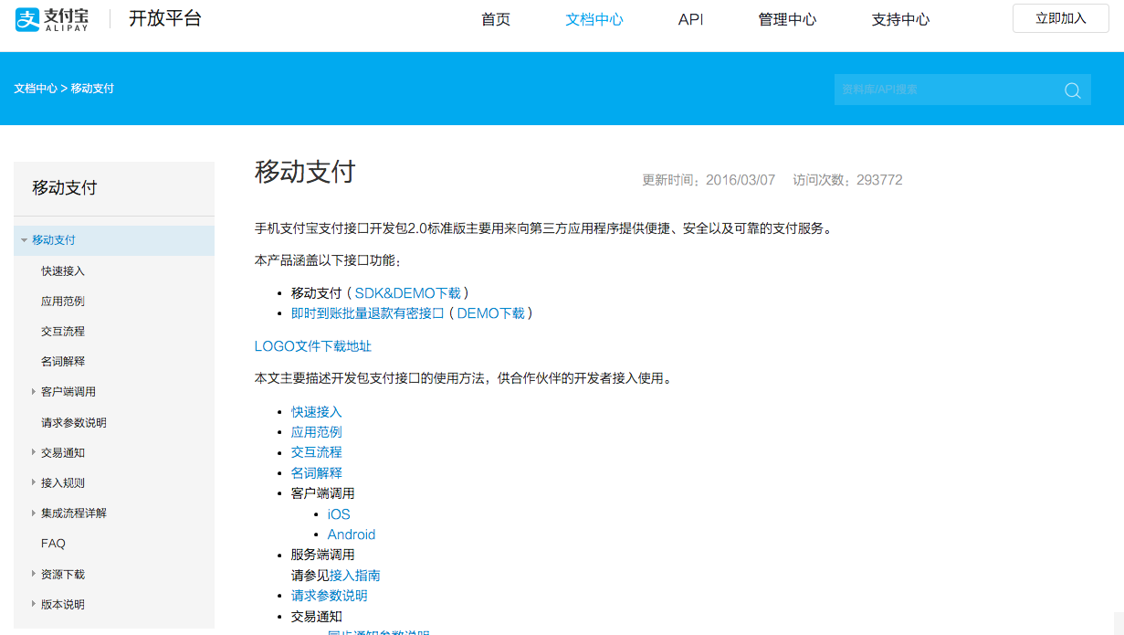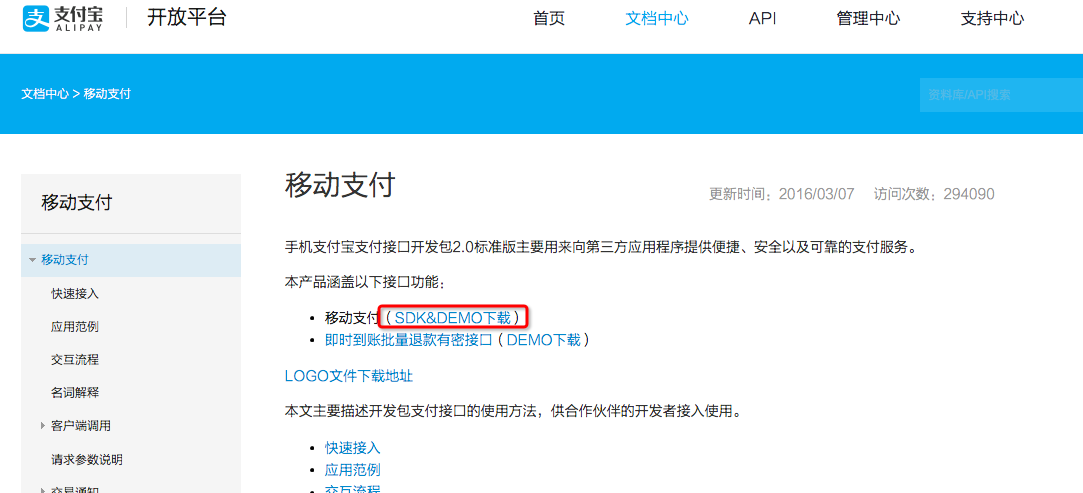 我们通过在支付宝开放平台的文档中心>移动支付 网址:https://doc.open.alipay.com/doc2/detail?treeId=59&articleId=103563&docType=1