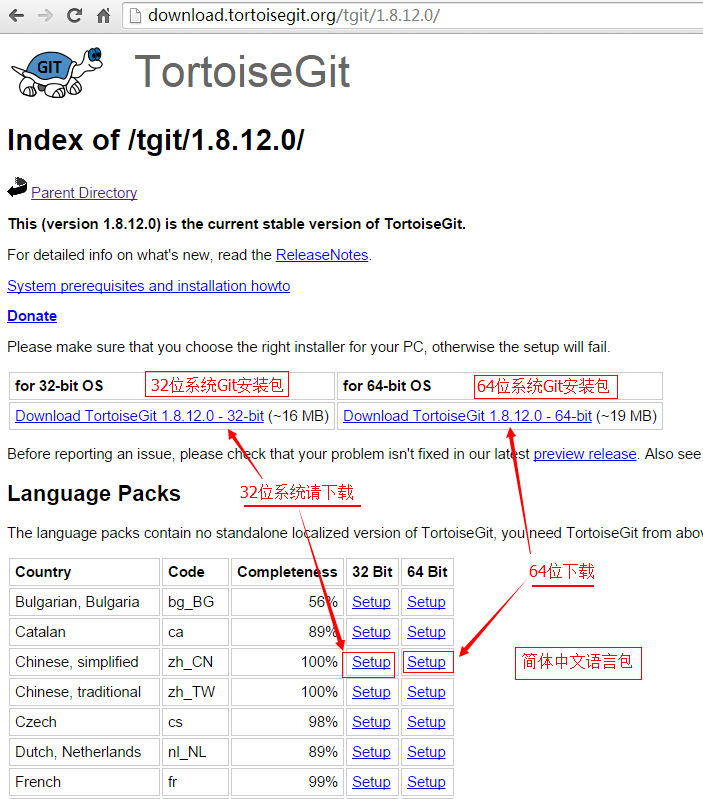 32位程序安装包下载地址: http://download.tortoisegit.org/tgit/1.8.12.0/TortoiseGit-1.8.12.0-32bit.msi