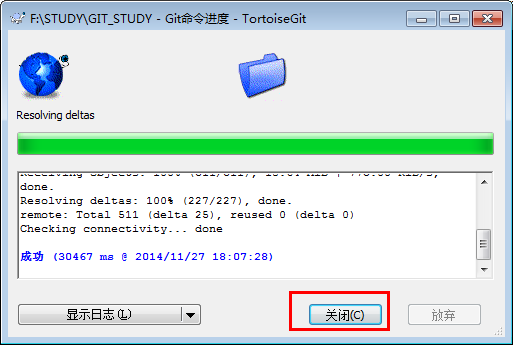 本地目录,你也可以自己选择,一般默认即可.然后点击"确定"按钮,开始克隆项目. 根据项目大小,时间会不一样. 克隆完成后,如果没有错误,会给出提示:
