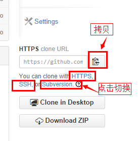 Git项目的URL: 可以在线访问Git项目页面,在右侧可以看到 SSH, HTTPS, SVN的访问路径.