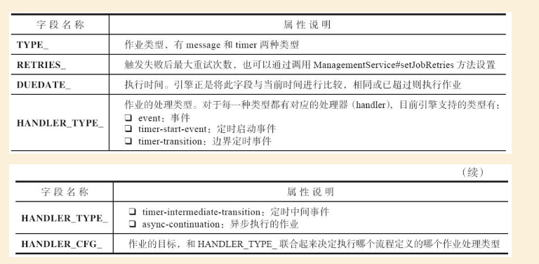 定时启动的job呗记录在ACT_RU_JOB表中,以下是该表的一些主要字段: