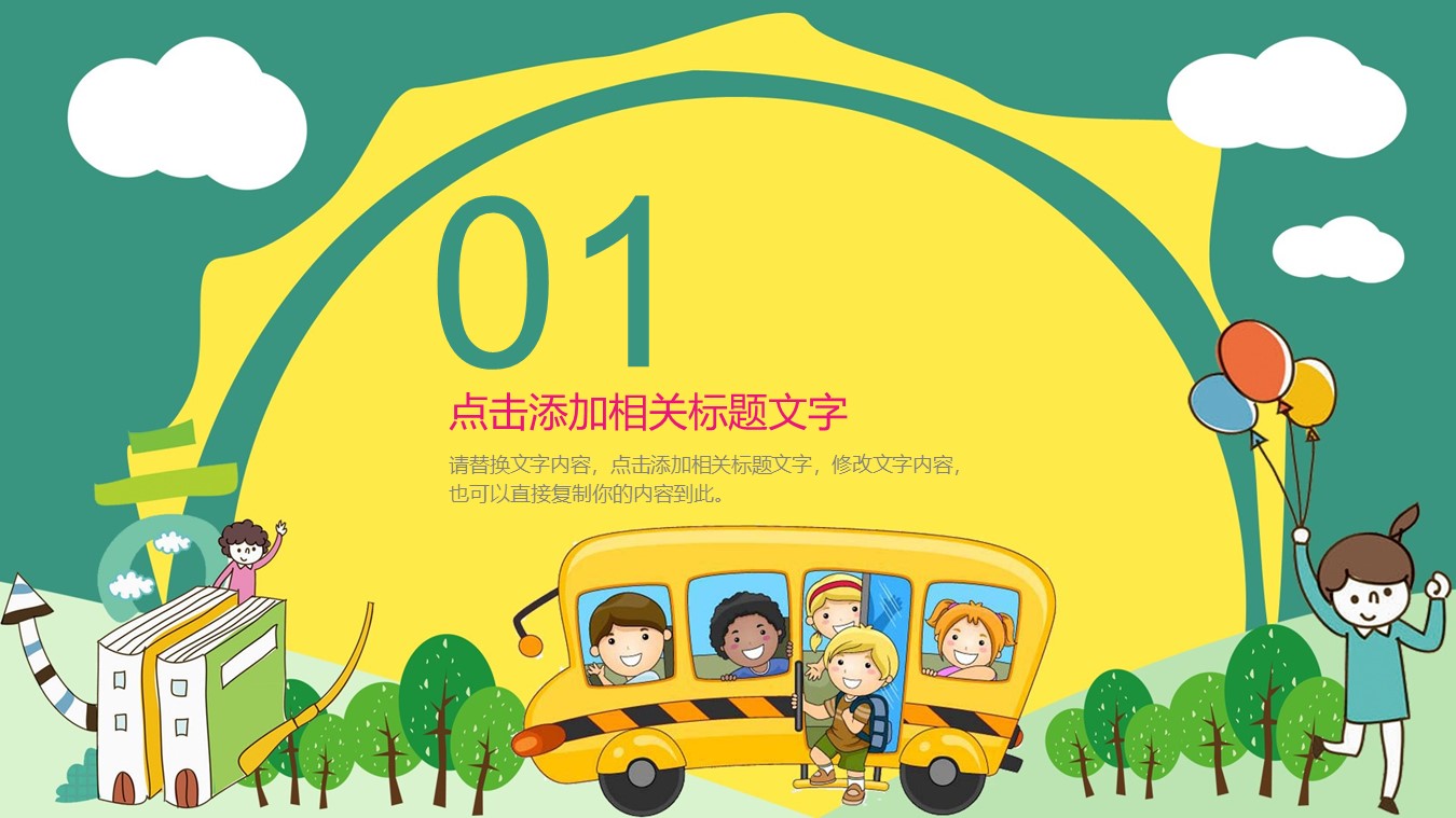 这套PPT课件模板,采用卡通元素设计风格简单可爱,清新配色,图片内容可删改替换,模板还可以用于教育培训,教师说课,教学演讲等。
