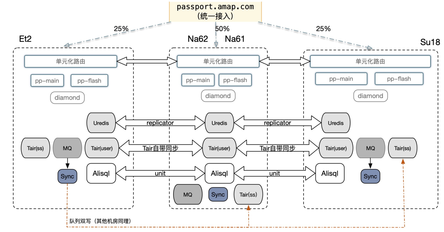 以账号系统为例介绍下高德单元化应用的整体架构。