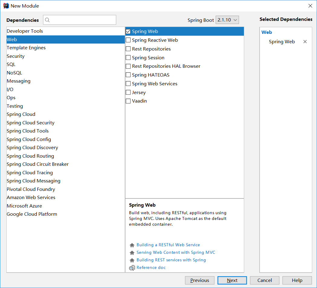 在项目上右键>New>Module,首先创建core子模块,这个模块在选择依赖的时候勾选上web依赖,其他子模块不需要勾选。