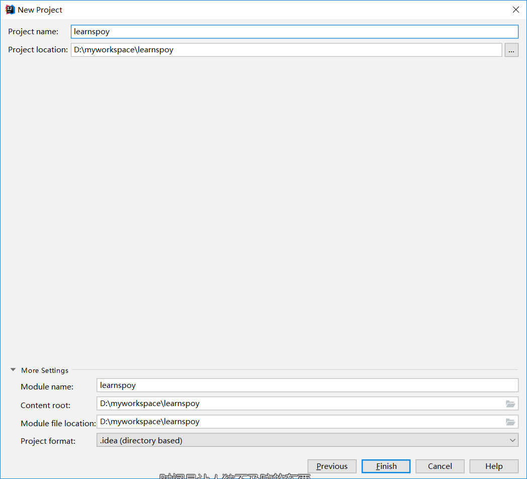 定义项目的名称,以及项目存储的地方,点击finish完成本次创建