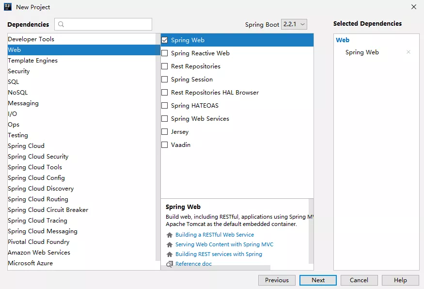 创建一个 Spring Boot 项目,只需要添加 Web 依赖即可: