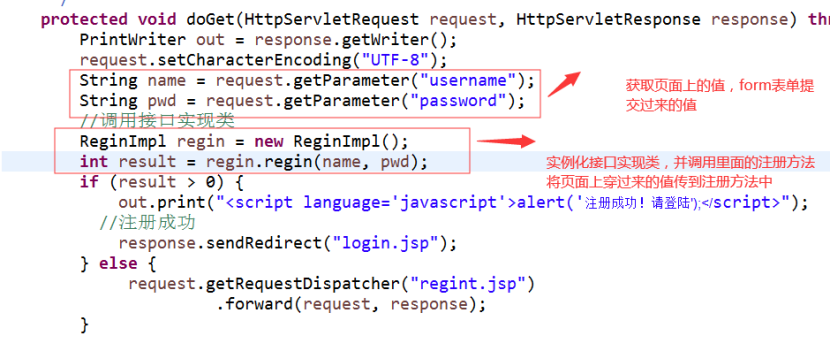 记住:servlet中只做数据的获取和方法的调用,页面的跳转