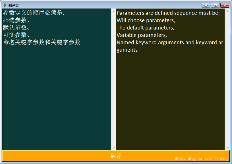tgt.insert(tk.INSERT,res)#显示新翻译内容