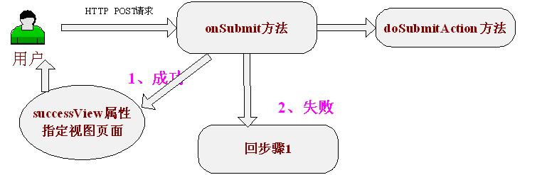2、提交表单处理,当用户提交表单内容后,AbstractFormController可以将用户请求的数据绑定到命令对象,并可以验证表单内容、对命令对象进行处理。