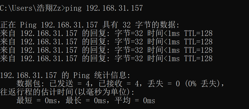 (3)ping本地IP地址来检测本地的IP地址是否有误,如下图所示