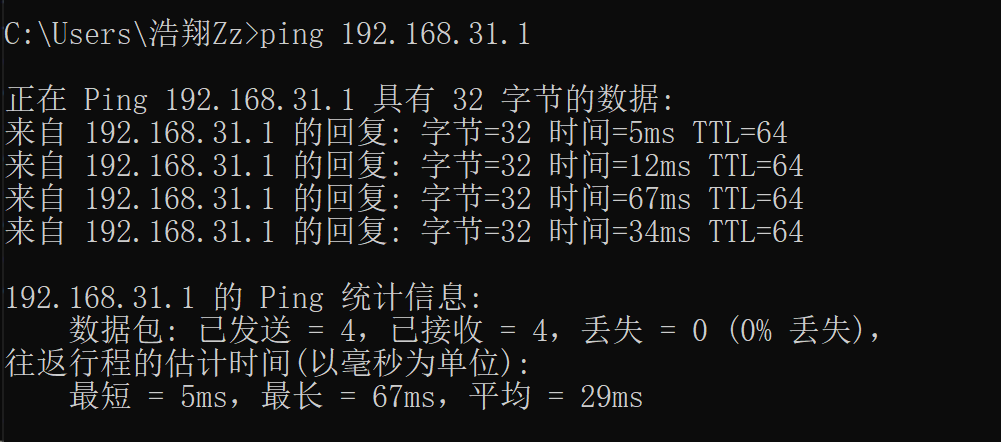 (4)ping本网网关来检查设备硬件是否有问题,也可以检查本机与本地网络连接是否正常