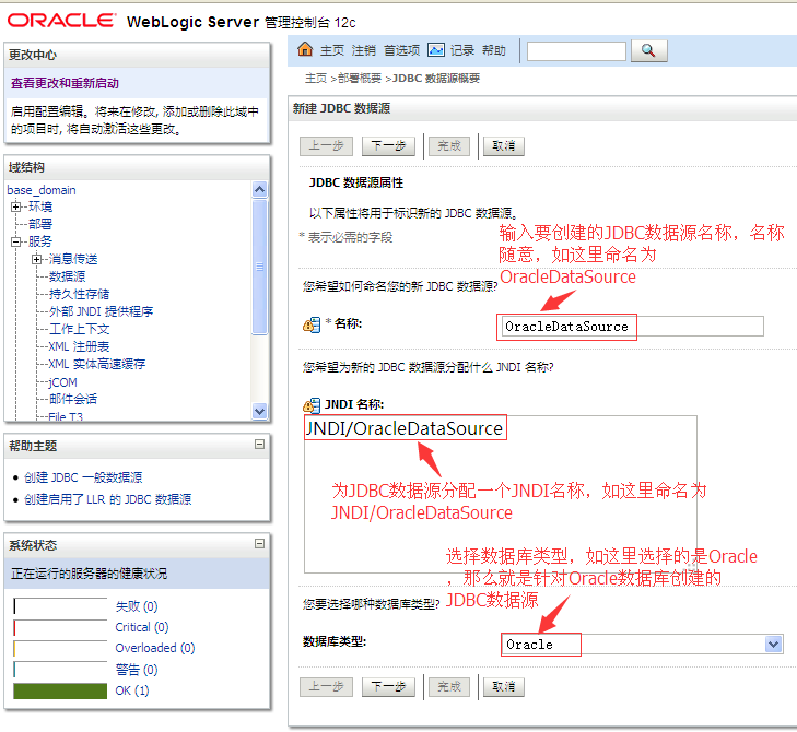 一、在WebLogic新建针对Oracle数据库的JNDI数据源