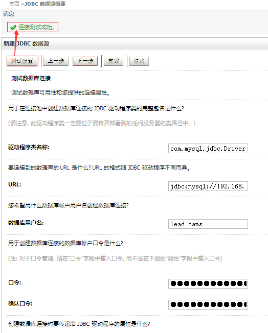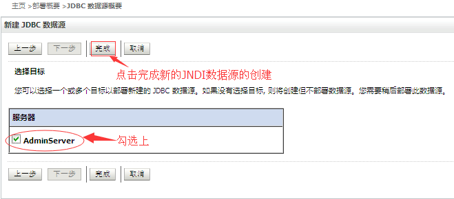 到此,在WebLogic新建针对Oracle数据库的JNDI数据源就算是全部完成了。数据源创建之后,我们就可以在应用程序中使用数据源了。
